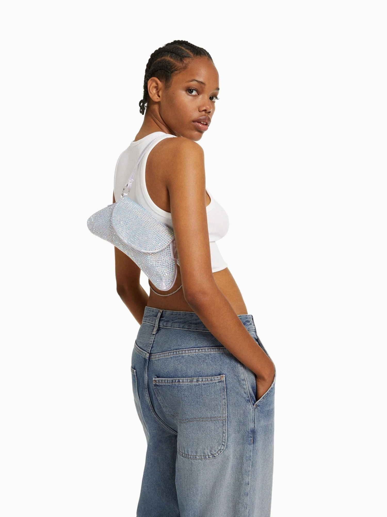 Bershka Skulderveske Sølvgrå